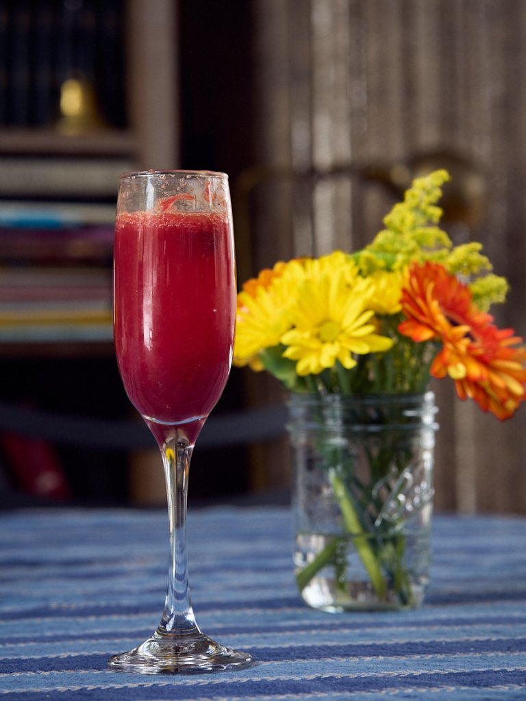 Slice 6 to 12 blood oranges and start juicing. 6 blood oranges gave us 8 oz with a basic electric citrus juicer, or a little less than 2 blood oranges per glass. Get out your favored mimosa glasses; a white wine glass, a champagne glass or whatever you have handy.