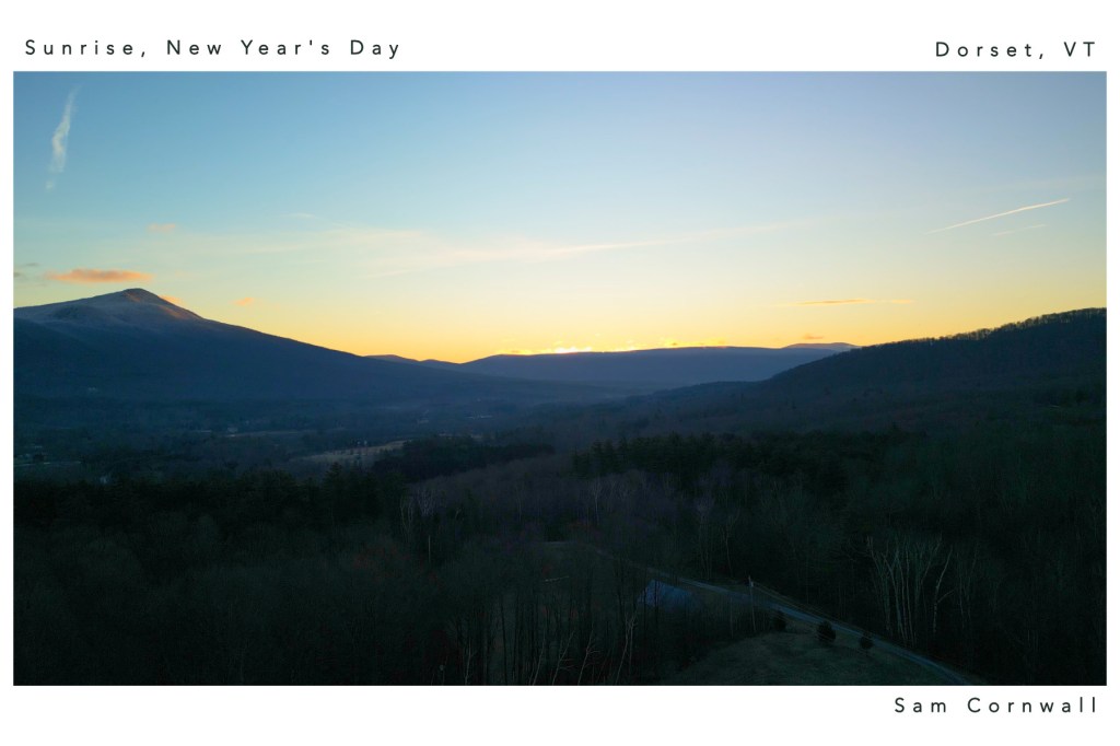 This winter keeps giving beautiful moments. Sunlight is creeping across a crisp and frozen winterscape, clear skies and frosted mountain tops in view. Similar to this morning’s sunrise, “Sunrise, New Year’s Day” is a moment of meditation before you continue on with your Sunday.