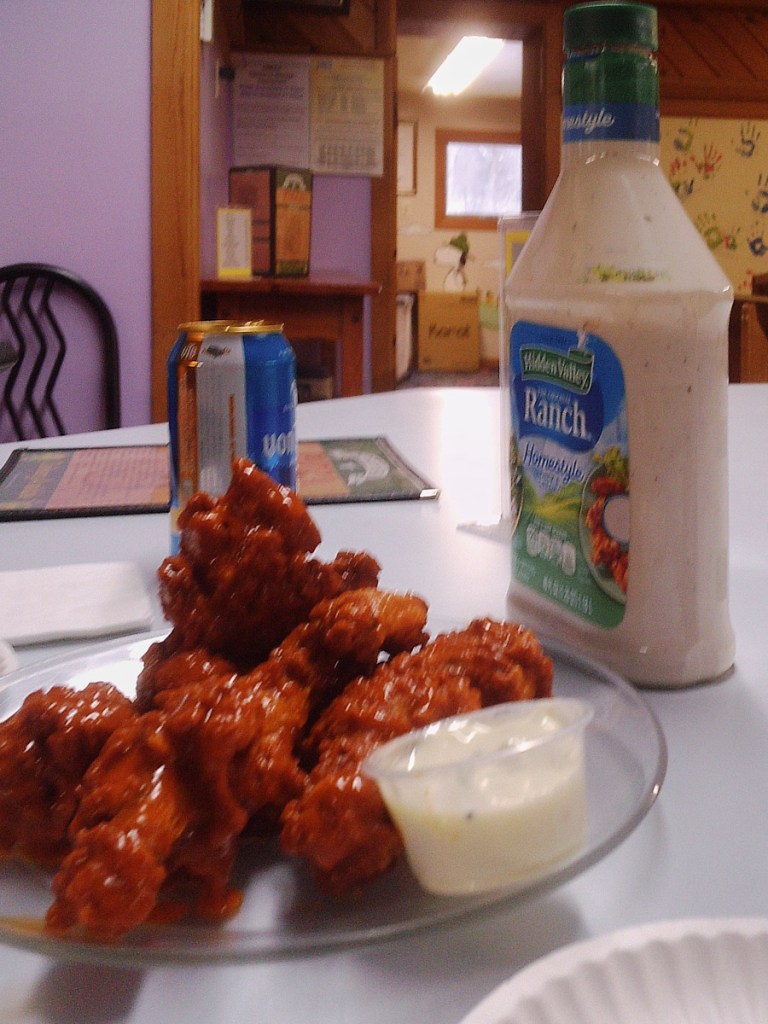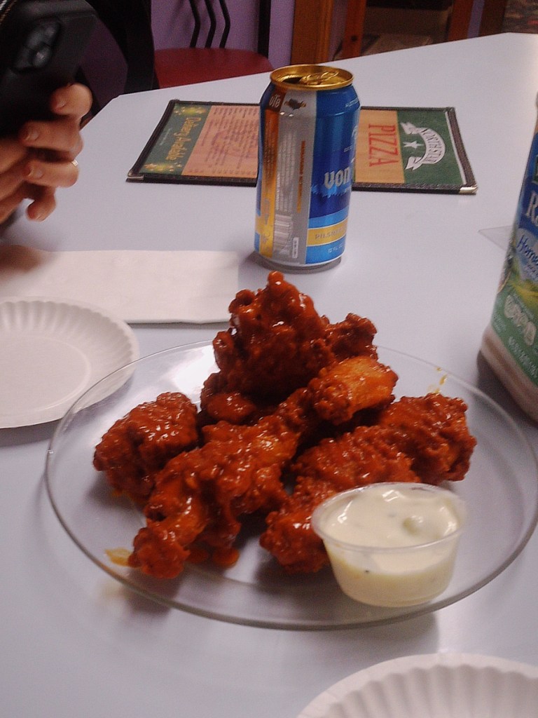 Pizza, wings and weird bowling.