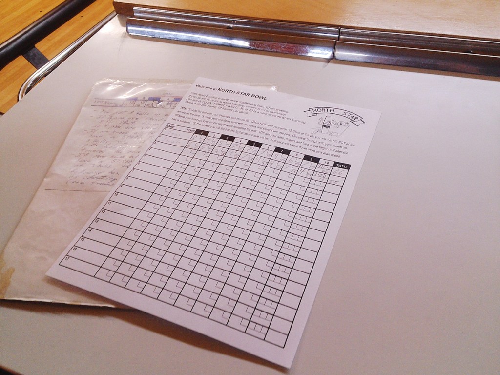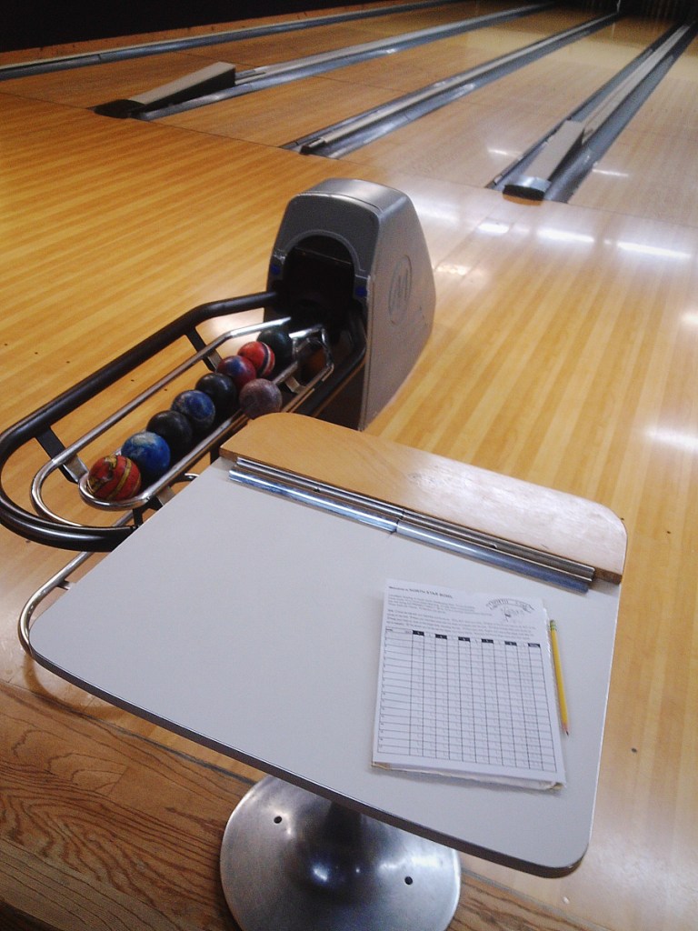 The sign over the bowling lanes at North Star Bowl, inside of North Star Pizza, instructs you to