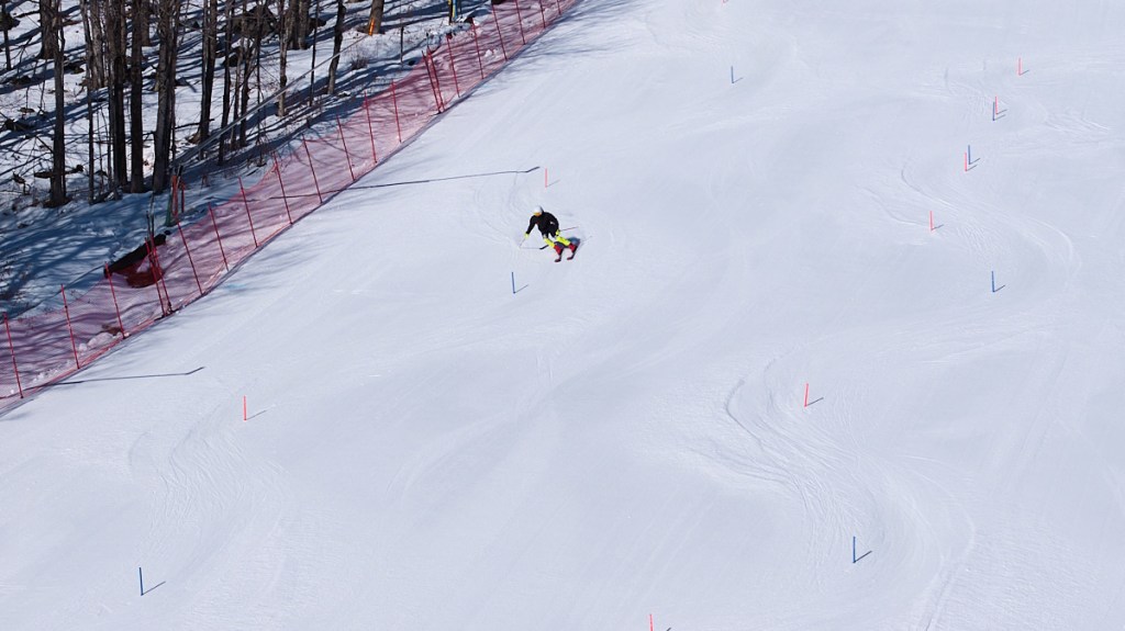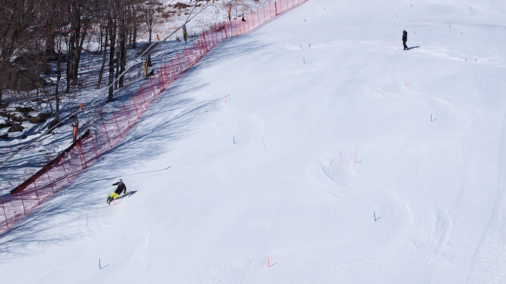 Friday, February 6th, marks the beginning of the 25th Winter Olympics. To celebrate Vermont’s Olympians of today and yesterday, we are showcasing the newest generation of winter sports athletes, already hard at work right here in Southern Vermont. These skiers featured here all train and race with the Bromley Outing Club. This selection of drone photographs was taken the first day of gate training this winter on the Upper East Meadow trail on Bromley’s east face.