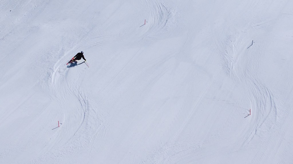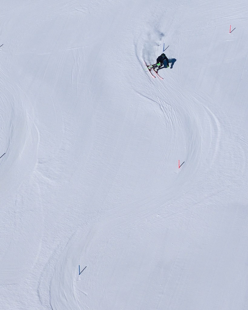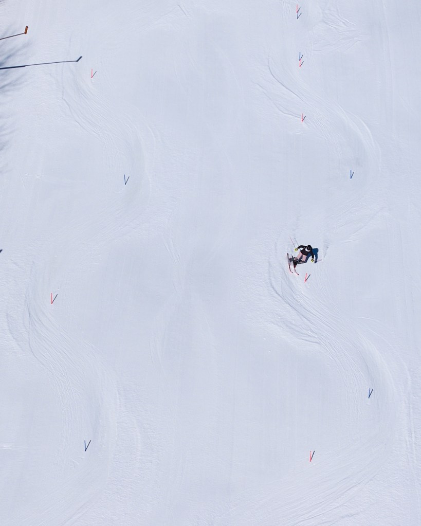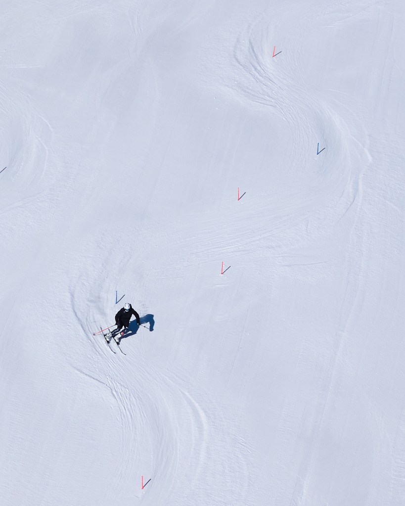 These unusual drone photos capture the vibrance and energy of these skiers getting back into the flow of racing gates. These photos, shot with a drone and long lenses, offer an alternative to the typical up-close race photo that show the athlete without the overall context of their mission racing downhill. Sam’s photos draw the viewer in with lines and shapes that explore the racers’ connection with their craft, the snow and gravity. The s-shapes of the course allude to the history behind these athletes while they follow the path to their futures ahead.